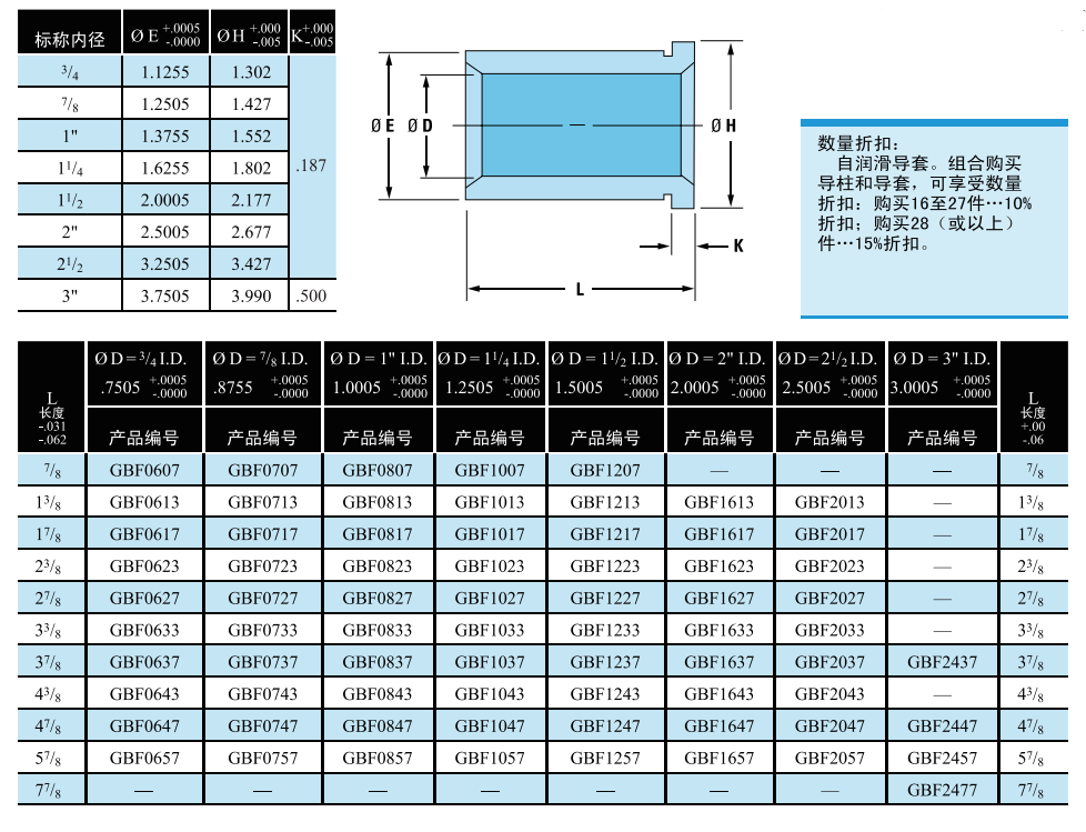 DME自润滑导套可节约时间以及注塑模具的设计、制作和运行成本。此类导套尤其适用于洁净室或任何无法使用外用润滑剂的模具零件制作场所,包括医疗、电子和食品相关的产品。鉴于其内在润滑性能,此类导套是快速循环和高产模具的最佳选择。