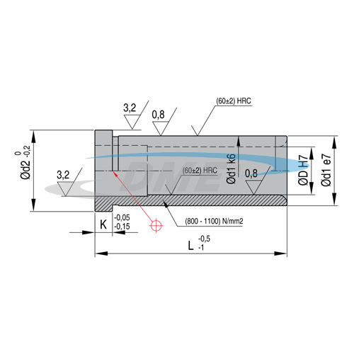 该导套采用优质精密合金钢制作而成。所有导套均经过淬火和精密研磨处理,以减少磨损和延长恶劣制模和碾轧状态下的模具的使用寿命。经过精密打磨,导套内径满足公差要求,并能够确保DME标准导柱的平整度、坚固性和通畅性。