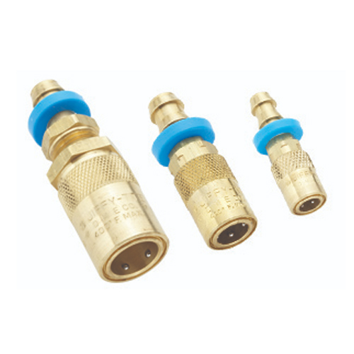 DME Jiffy-Tite喉咀与DME Jiffy-Tite(直通型)快速接头配套使用,DME Jiffy-Matic(自动关闭型)快速接头经设计适用于注塑模具和压铸模具水管、气管或油管中。该类连接件采用黄铜和不锈钢材质防泄漏结构;最大额定压力为200psi;配套提供的氟橡胶密封件耐高温可达400°F。DME Jiffy-Tite 和 Jiffy-Matic 快速接头可互换,并使用相同的Jiffy-Tite喉咀(已安装在注塑模具和压铸模具中)。同等规格的两种类型套筒拥有相同外径,从而即便在喉咀嵌装后也可进行互换。