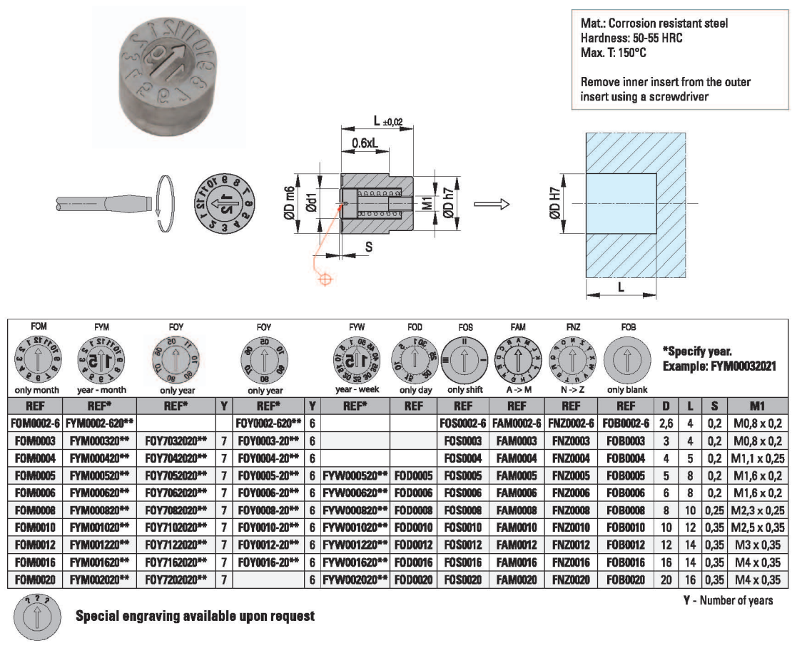 Dating inserts——F series 日期章-F系列 产品目录下载 产品3D图下载