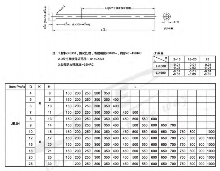 Straight Ejector Pins - Nitrided - JEJN 直顶针-JEJN