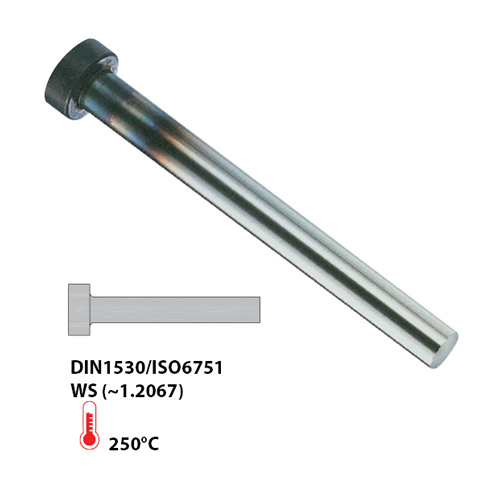 产品优势: — 采用优质H13抗热抗冲击热模锻钢制作而成。 — 热锻顶针头可确保均匀的晶粒流向和高抗拉强度。 — 定芯硬度达40-45HRC。 — 外部经氮化处理,硬度可达65-70HRC,可最大限度减少磨损。 — 经淬火处理的顶针头更加易于加工。 — 经无芯直径D径向研磨。