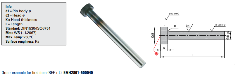 Straight Ejector Pins - Nitrided - EAH 直顶针-EAH 产品目录下载 产品3D图下载
