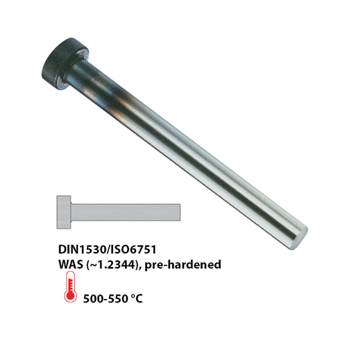 产品优势: — 采用优质H13抗热抗冲击热模锻钢制作而成。 — 热锻顶针头可确保均匀的晶粒流向和高抗拉强度。 — 定芯硬度达40-45HRC。 — 外部经氮化处理,硬度可达65-70HRC,可最大限度减少磨损。 — 经淬火处理的顶针头更加易于加工。 — 经无芯直径D径向研磨。