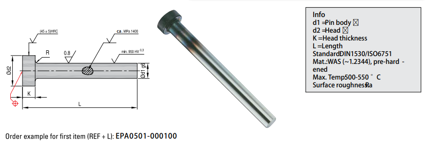 Straight Ejector Pins - Nitrided - EPA 直顶针-EPA 产品目录下载 产品3D图下载