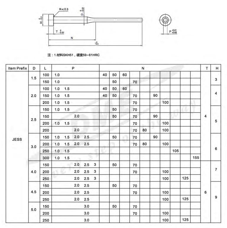 阶梯顶针/托针-JESS-SKH51-全硬-亚标