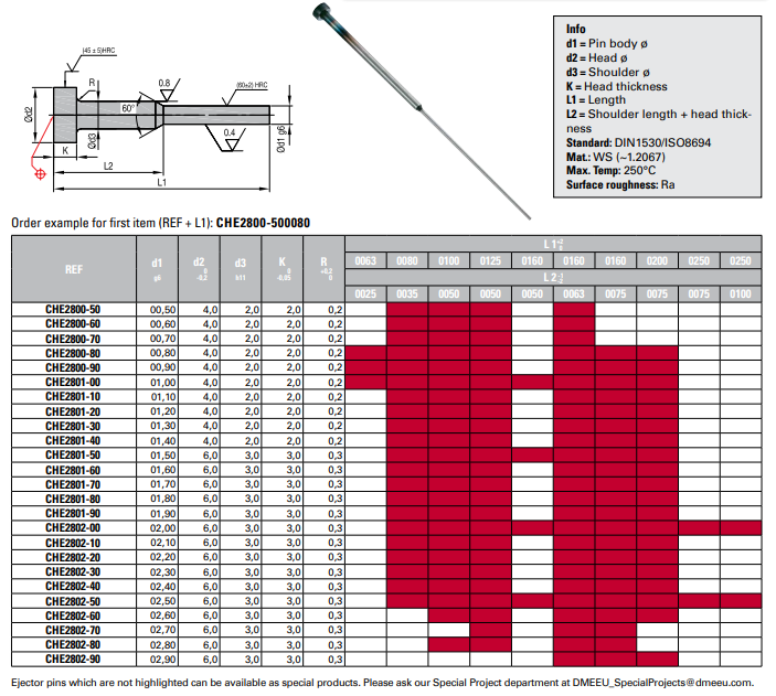Shouldered Ejector Pins - Nitrided - CHE28 阶梯顶针-CHE28 产品目录下载 产品3D图下载
