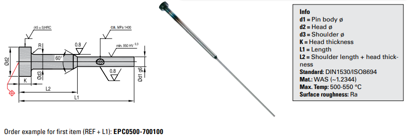 Shouldered Ejector Pins - Nitrided - EPC 阶梯顶针-EPC 产品目录下载 产品3D图下载