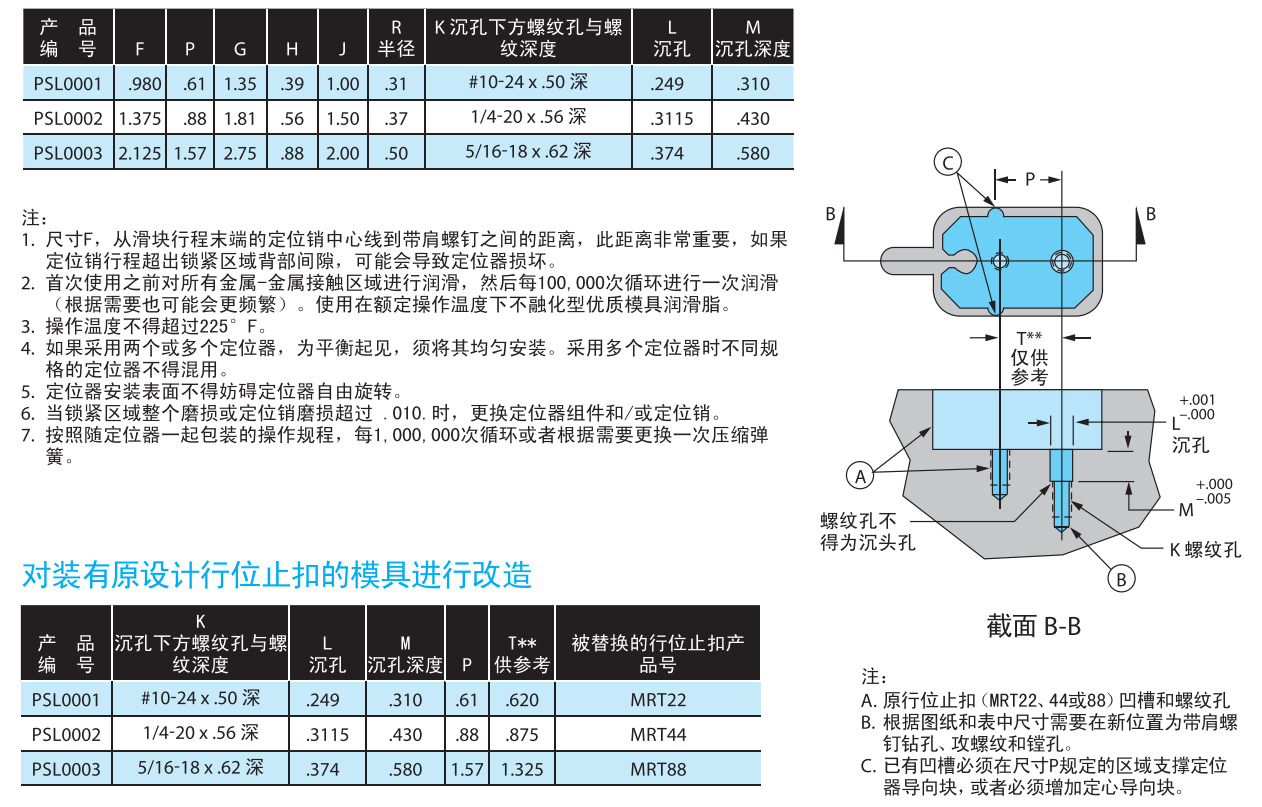 SmartLock行为止扣与限位开关设计用于注塑模具,采用独特的组件对滑块位置进行切换和止动,成型制品脱模时,SPDT开关同时动作,SmartLock的锁定功能将防止滑块提前运动。
