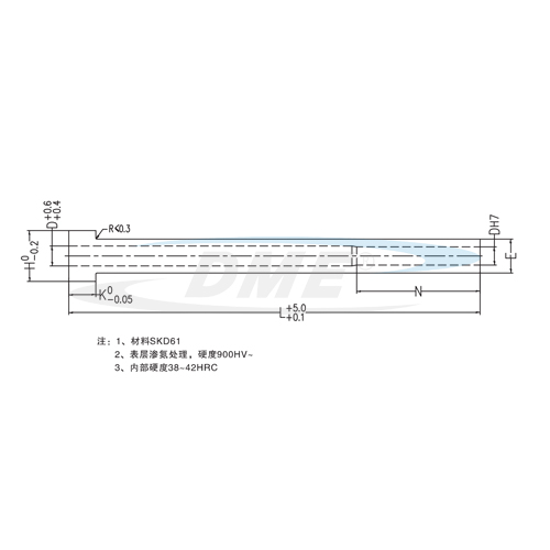 产品优势: — 采用优质耐高温高强度的模具钢材精密制作而成。 — 高温锻造的头部可确保均匀的流体流向和高抗拉强度。 — 经氮化和调整后的外径强度可达65-74HRC,能最大限度减少磨损。 — 外径经过无心磨削和抛光。 — 经精密研磨的线模内径强度可达30-35HRC。 — 精确校正导入锥度可确保顶针顺利地进入司筒。