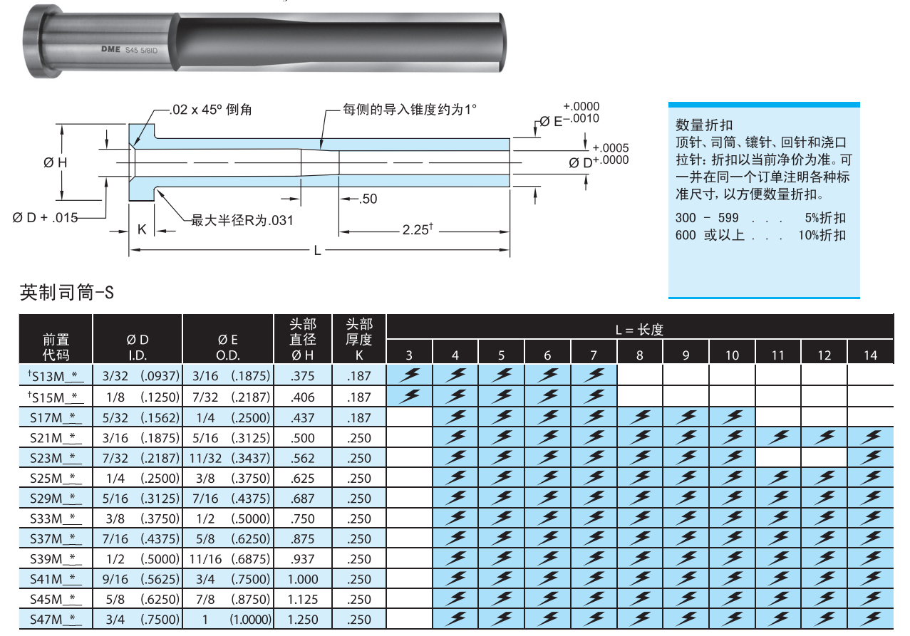 INCH Ejector Sleeves —— S/M 直司筒-S/M 产品目录下载 产品3D图下载