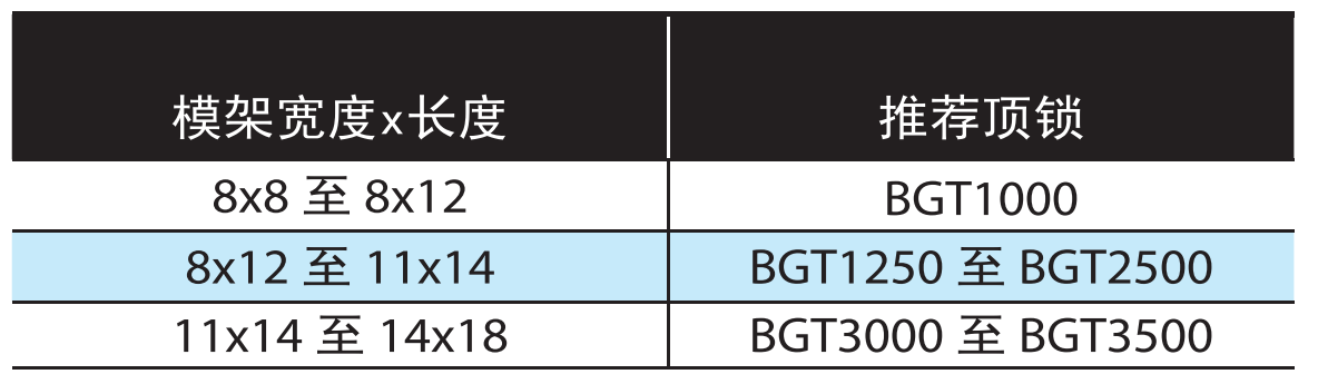 — 每个模具安装四个边锁(一边一个)。