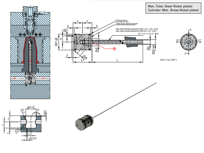 DME冷却棒适用于冷却模具或凹模中型芯。该配件在供货时两端均带有螺纹,因此可从两个螺纹管18英寸长度之间进行切割,可用于运水件中更换管件。