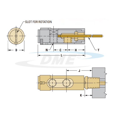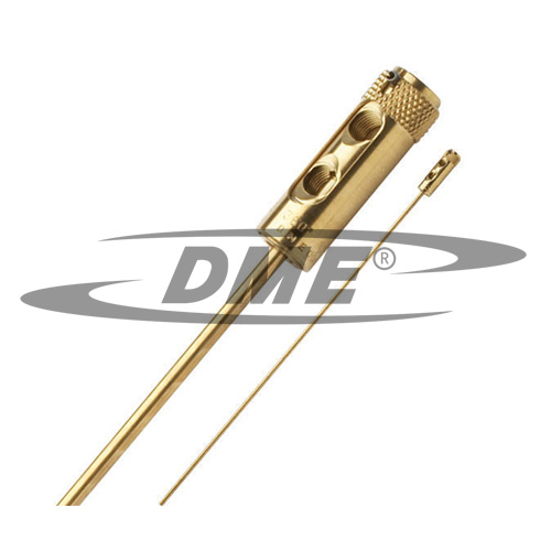DME Jiffy-Tite喉咀与DME Jiffy-Tite(直通型)快速接头配套使用,DME Jiffy-Matic(自动关闭型)快速接头经设计适用于注塑模具和压铸模具水管、气管或油管中。该类连接件采用黄铜和不锈钢材质防泄漏结构;最大额定压力为200psi;配套提供的氟橡胶密封件耐高温可达400°F。DME Jiffy-Tite 和 Jiffy-Matic 快速接头可互换,并使用相同的Jiffy-Tite喉咀(已安装在注塑模具和压铸模具中)。同等规格的两种类型套筒拥有相同外径,从而即便在喉咀嵌装后也可进行互换。