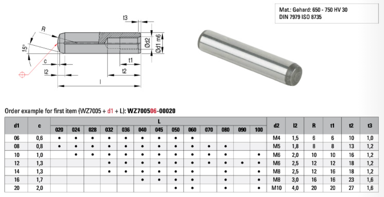 DOWEL PINS WITH INTERNAL THREAD —— WZ7005 内螺纹销钉 —— WZ7005 产品目录下载 产品3D图下载